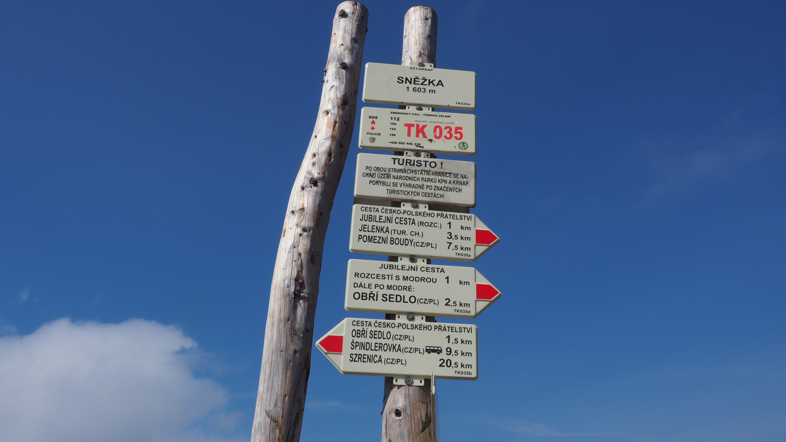 - Sněžka 1603 m n.m. is de Tsjechische aanduiding. m n.m. staat voor metrů nad mořem (meters boven de zee).
